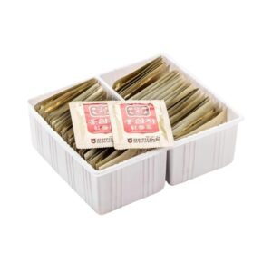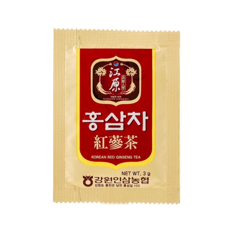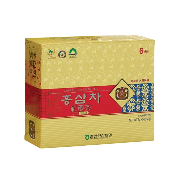 Enjoy the rich heritage and powerful health benefits of Gang Won Korean Red Ginseng Tea, crafted from 6-year-old premium Korean red ginseng extract. Each box contains 50 individually packaged 3g sachets, ensuring convenience and freshness. With a potent blend of 70% Korean ginseng rootlet and 30% fine-root, this tea provides a high concentration of ginsenosides (Rg1+Rb1+Rg3 5.9mg/g), making it an excellent choice for those seeking natural vitality and immune support.